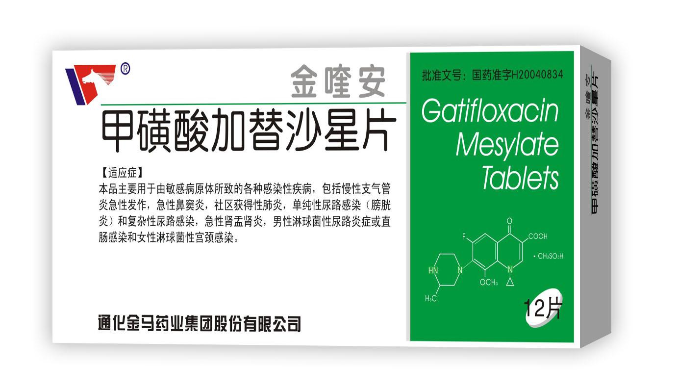 甲磺酸加替沙星片 【功能主治】本品主要用于由敏感病原體所致的各種感染性疾病,包括慢性支氣管炎急性發(fā)作,急性鼻竇炎,社區獲得性肺炎,單純性尿路感染(膀胱炎)和復雜性尿路感染,急性腎盂腎炎,男性淋球菌性尿路炎癥或直腸感染和女性淋球菌性宮頸感染。